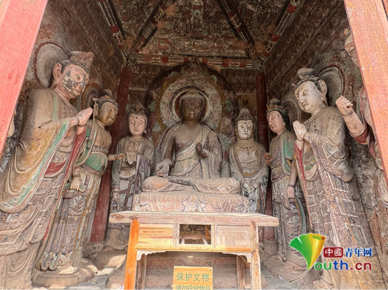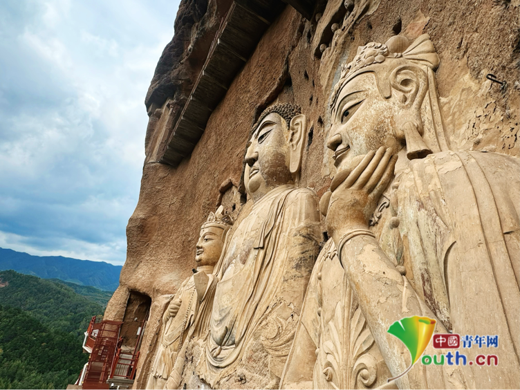 中国青年网天水10月17日电 (记者 张晰)在甘肃省天水市麦积区,有一座高142米的孤峰耸立,状如麦垛,名曰麦积山。在这座山峰的悬崖峭壁之上,密布着如繁星般的石窟,它们历经千年风雨,见证了中华文明的辉煌,这就是我国四大石窟之一的麦积山石窟。