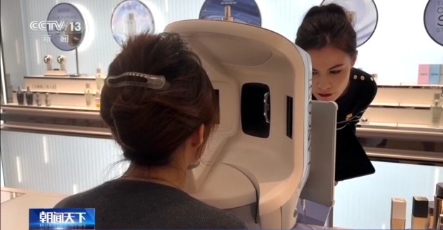 美妆体验店里的肌肤检测仪还可以“AI看脸”,通过15000多张图片训练出的算法,检测仪能够提供一系列皮肤护理建议。