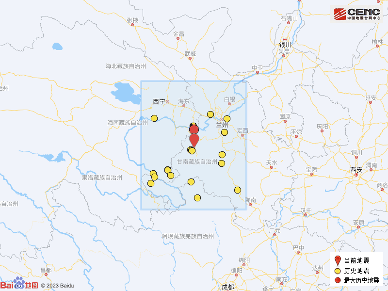 历史地震:根据中国地震台网速报目录,震中周边200公里内近5年来发生3级以上地震共38次,最大地震是2023年12月18日在甘肃临夏州积石山县发生的6.2级地震(距离本次震中47公里),历史地震分布如图。