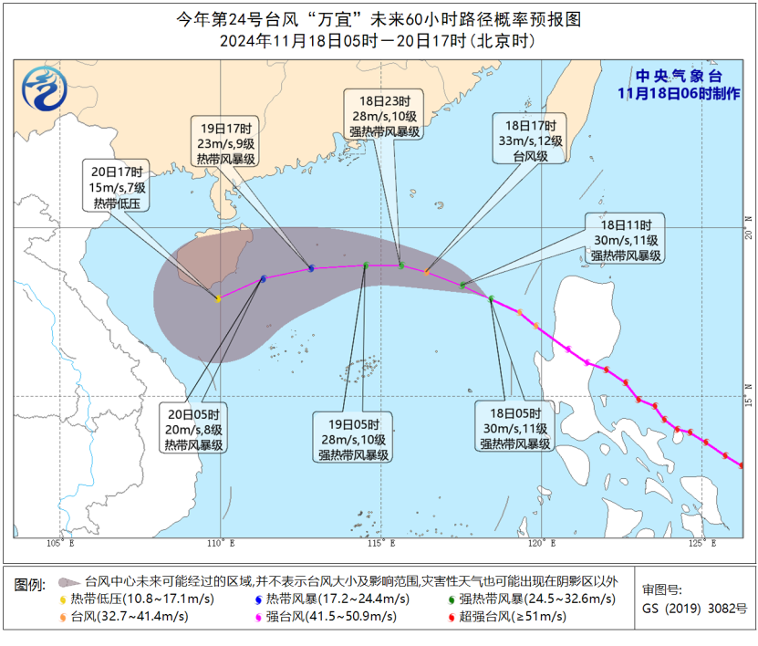 中央气象台11月18日06时发布台风黄色预警: