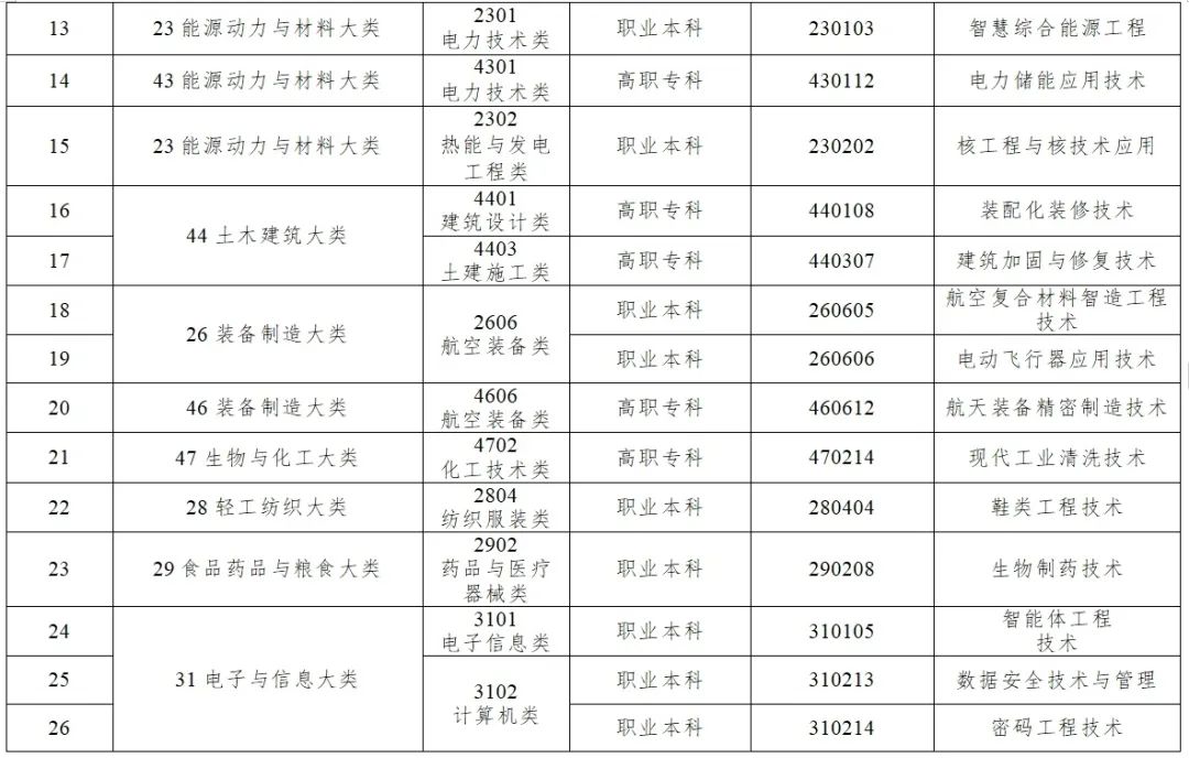 本次新增设的专业重点服务实体经济,特别是面向先进制造业、数字产业发展对技能人才的新需求,新增相关专业占比超过50%。新增的专业中,近半数是职业本科专业,将更好地满足产业升级对高层次技能人才的需求。